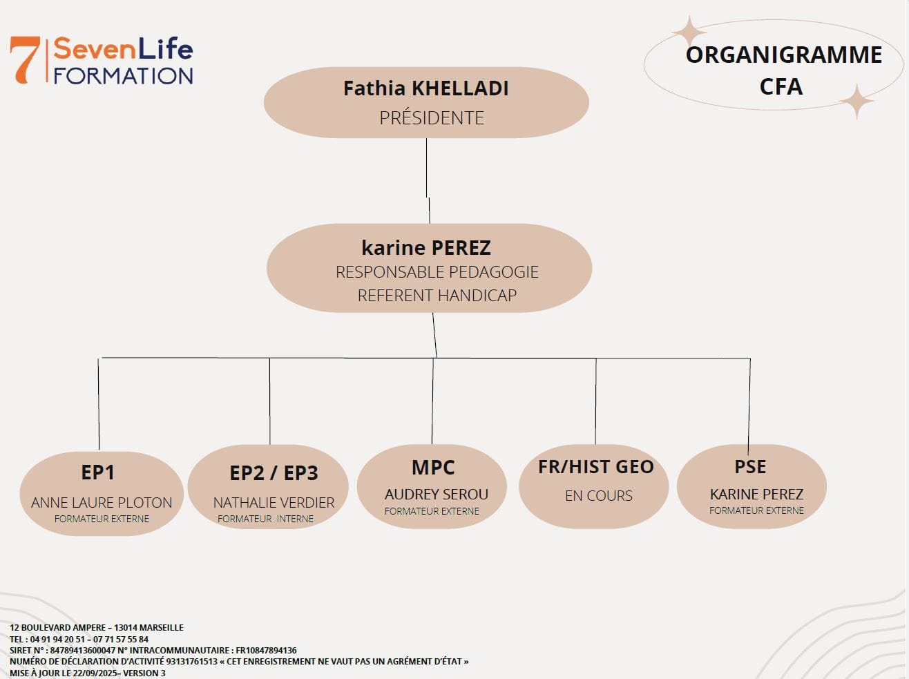 Organigramme de l’organisme de formation